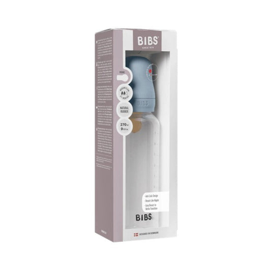 Bibs BPA Free Bottle 270ml Medium Flow - Latex Teat - Baby Blue