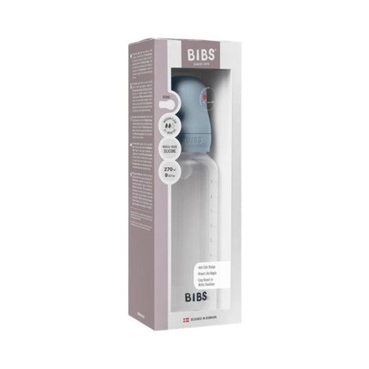 Bibs BPA Free Bottle 270ml Medium Flow - Silicone Teat - Baby Blue