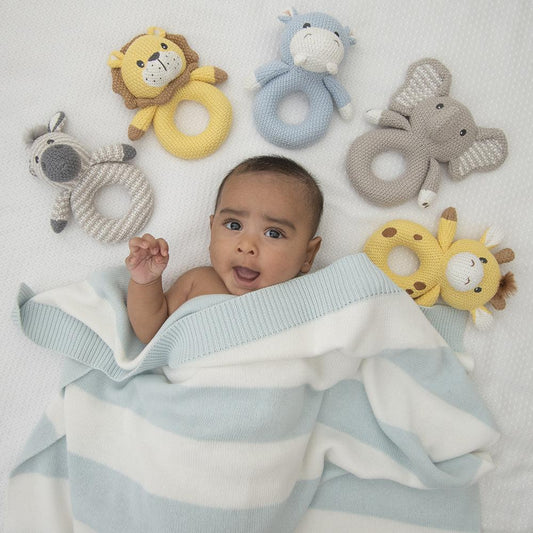 Living Textiles Whimsical Knitted Ring Rattle - Ella the Elephant