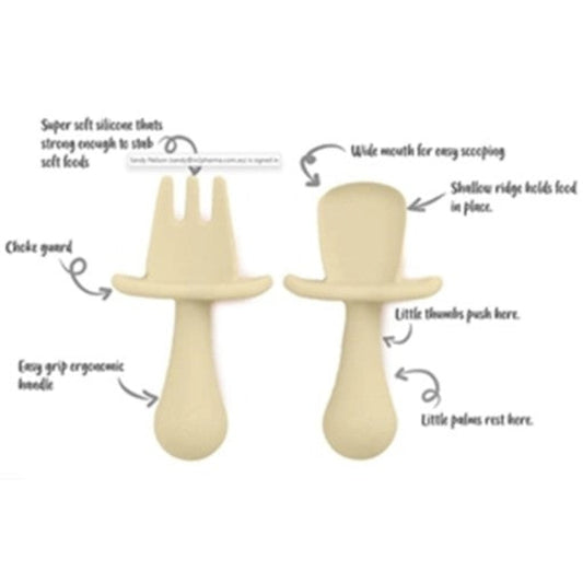 Cherub Baby - Baby Led Weaning Silicone Spoon & Fork - Sand