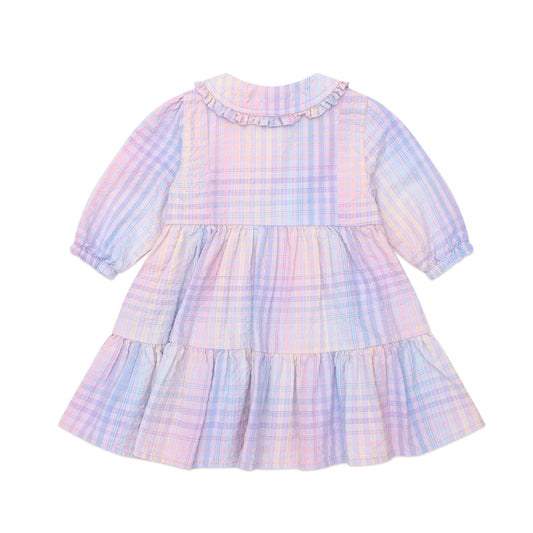 Huxbaby Rainbow Check Long Sleeve Frill Dress
