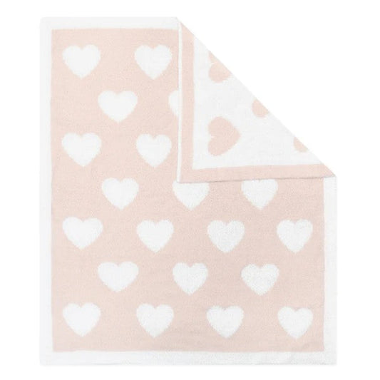 Living Textiles Chenille Pram Blanket - Pink Hearts