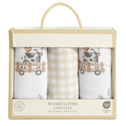 Living Textiles 3 pk Wash Cloths - Tractor Ride