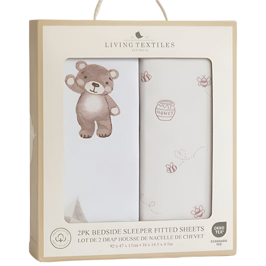 Living Textiles 2pk Bedside Bassinet Fitted Sheets - Cuddly Bear