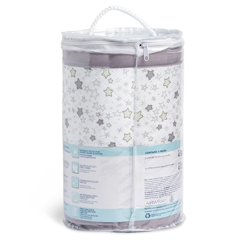 Airwrap Cot Liner Muslin 4 sides - Starry Night Grey