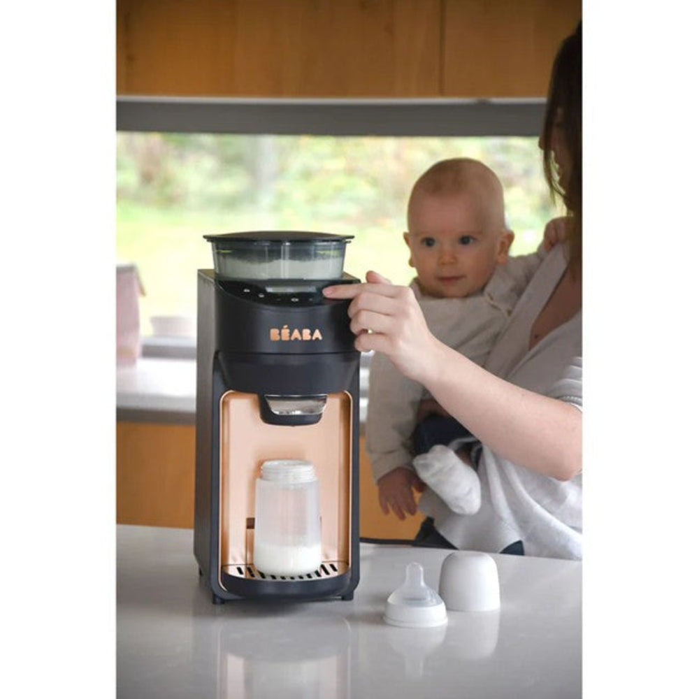The Milkeo Plus is the new generation of automatic bottle makers with a sleek design. Designed to simplify and speed up bottle preparation, this automatic device doses, heats, and dispenses directly into the bottle in less than 20 seconds. This speed and efficiency save parents valuable time, especially during restless nights