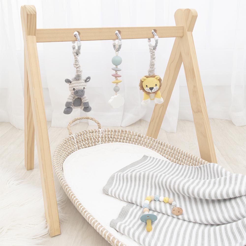 Keep baby entertained when out and about with our super sweet cotton knit stroller toys! Inspired by our Noah collection, these stroller toys can be attached to any stroller/pram hood , bumper bar or even baby's play-gym or car seat.