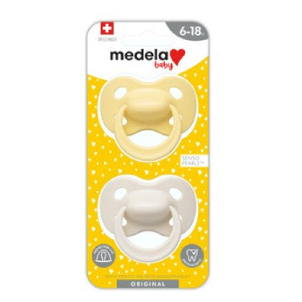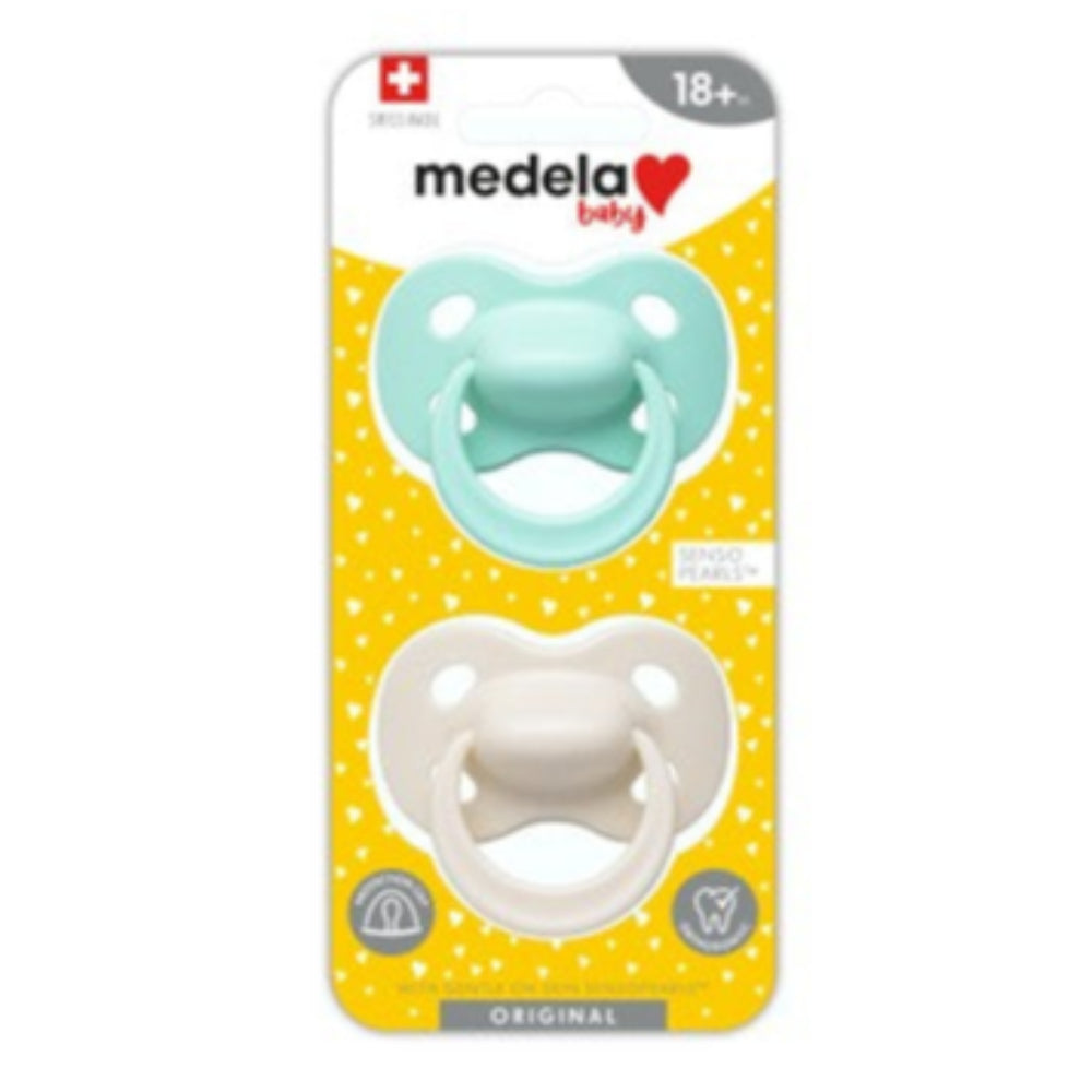 - The Medela Baby Original Pastel set of two soothers feature a flat teat to allow the tongue to move freely in the mouth