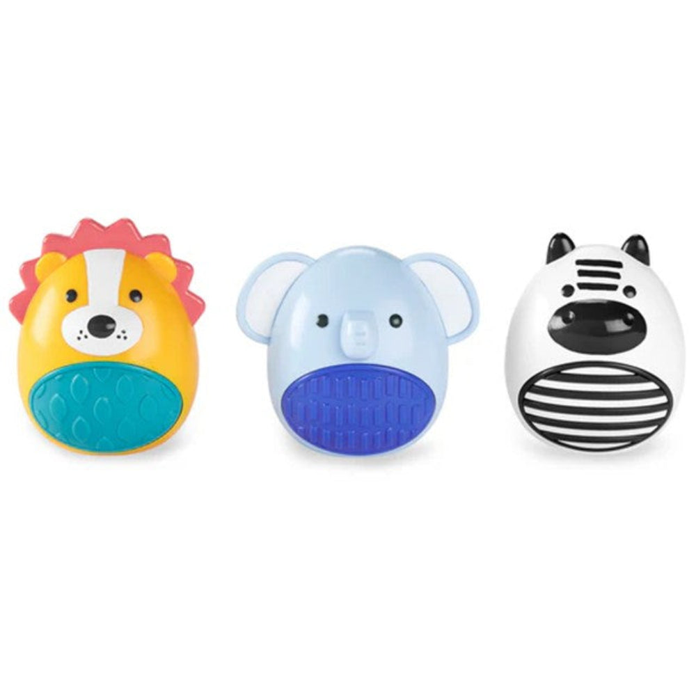 Shake up playtime and make some music! Featuring friendly safari animals and easy-grab shapes, this cute shaker set encourages baby to explore with three different sounds, tactile textures and more.