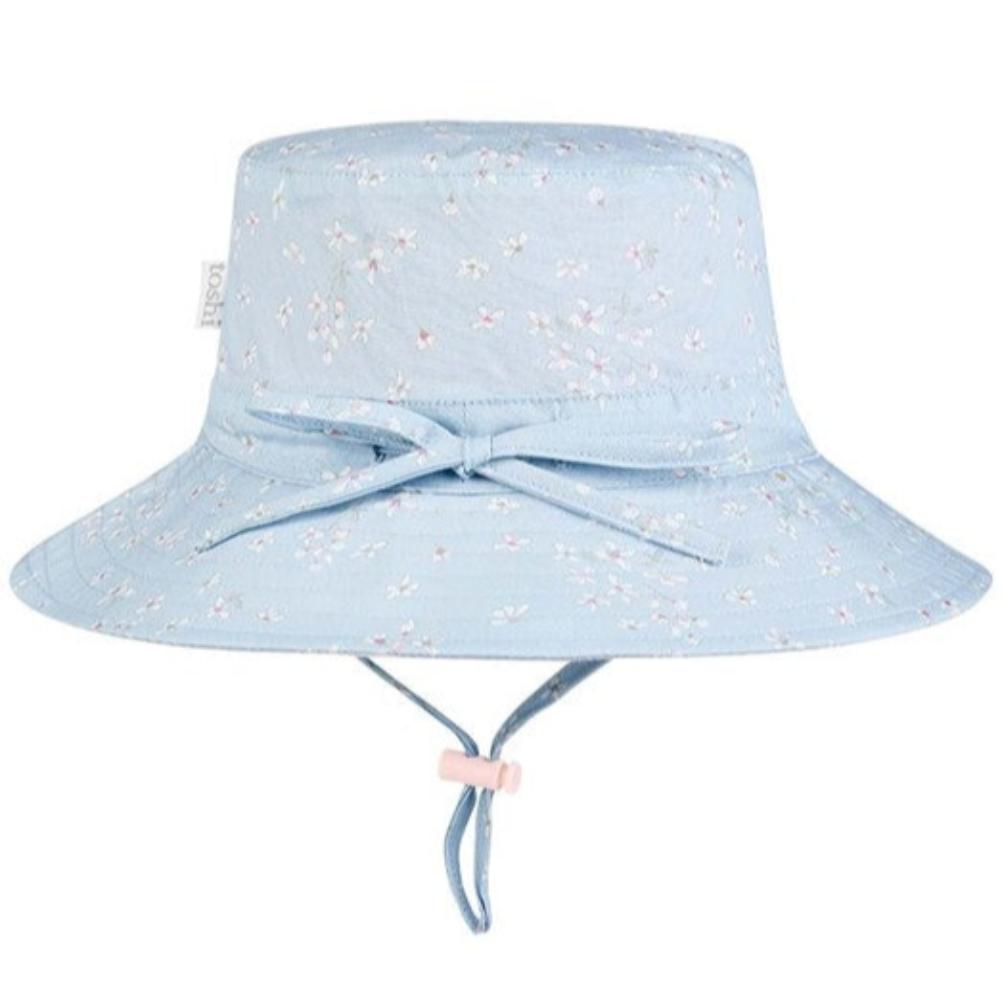 Toshi presents the classic Sunhat Nina, ideal for children of all ages. The broad and well-structured brim offers increased sun protection. A head tie creates adjustable sizing and the chin tie with toggle secures the hat for ease of wear. The security release clasp on the chin tie is designed to enhance wearer safety. The classic Toshi Sunhat is crafted from the finest quality 100% cotton and is fully lined for additional comfort.