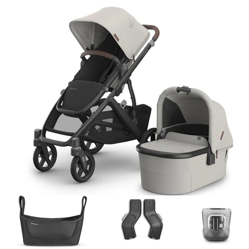 UPPAbaby VISTA V3 with Bassinet - Savannah with BONUS Upper Adaptors, Carry All Organiser and Cup Holder