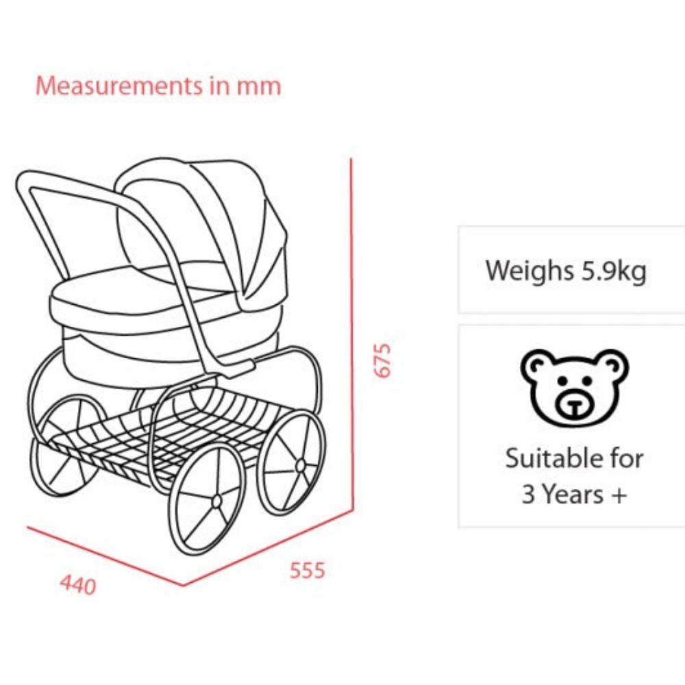 The Valco Princess Doll Stroller is a traditional and elegant doll stroller that sets the bar for style and quality, fitting for a Princess. With a roomy bassinet to fit most size dolls and many hand made features, this stroller will not only provide hours of play for your child but will also be a centre piece for your nursery.