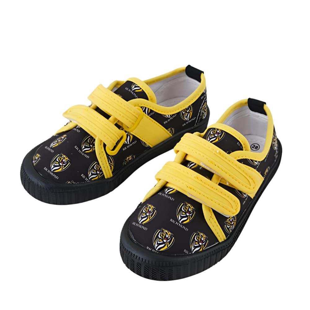Featuring a custom-designed print inspired by the iconic stripes of the Richmond Tigers, these shoes are a true testament to the passion of AFL fans. With a bold black and yellow background and playful tiger motifs, they're sure to ignite the spirit of young fans everywhere. And with a custom-designed Walnut Melbourne outsole, every step is infused with comfort and style.