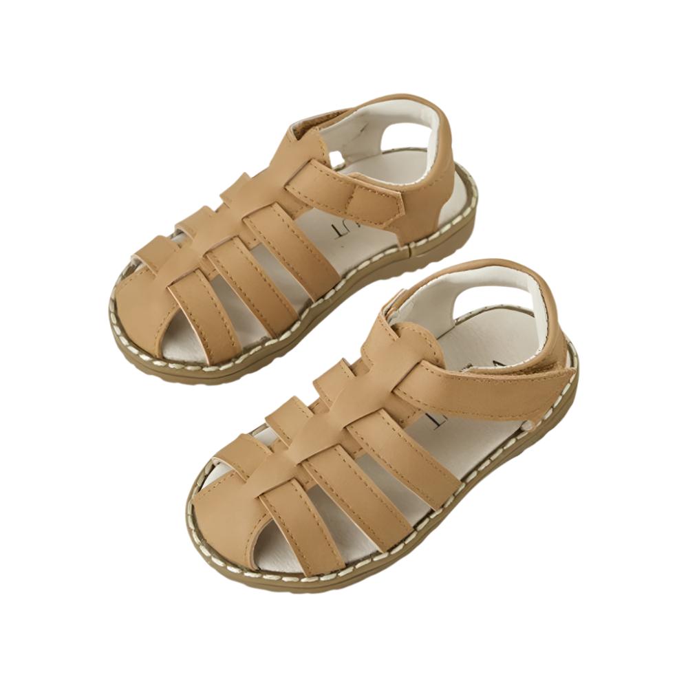 Introducing the Benson Sandal: A timeless design crafted from genuine leather with a synthetic lining. Its self-fastening strap offers both adjustable comfort and effortless wearability, ensuring a perfect fit every time.