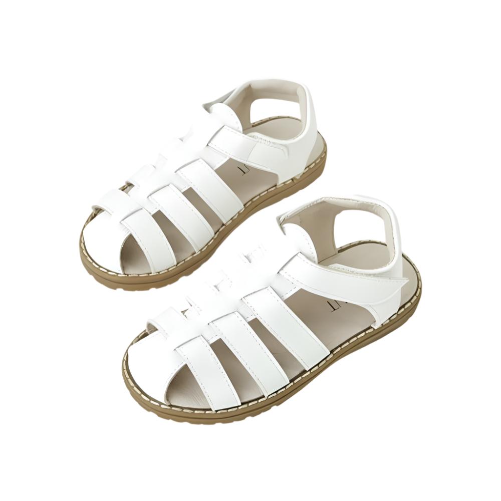 Introducing the Benson Sandal: A timeless design crafted from genuine leather with a synthetic lining. Its self-fastening strap offers both adjustable comfort and effortless wearability, ensuring a perfect fit every time.