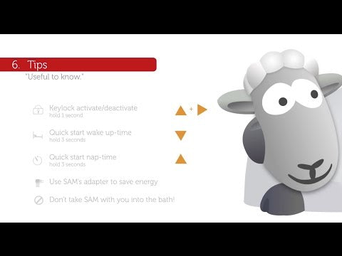 Sam's eyes close at bedtime and open in the morning when it is OK to get up. Set at a specific time or by length of nap.